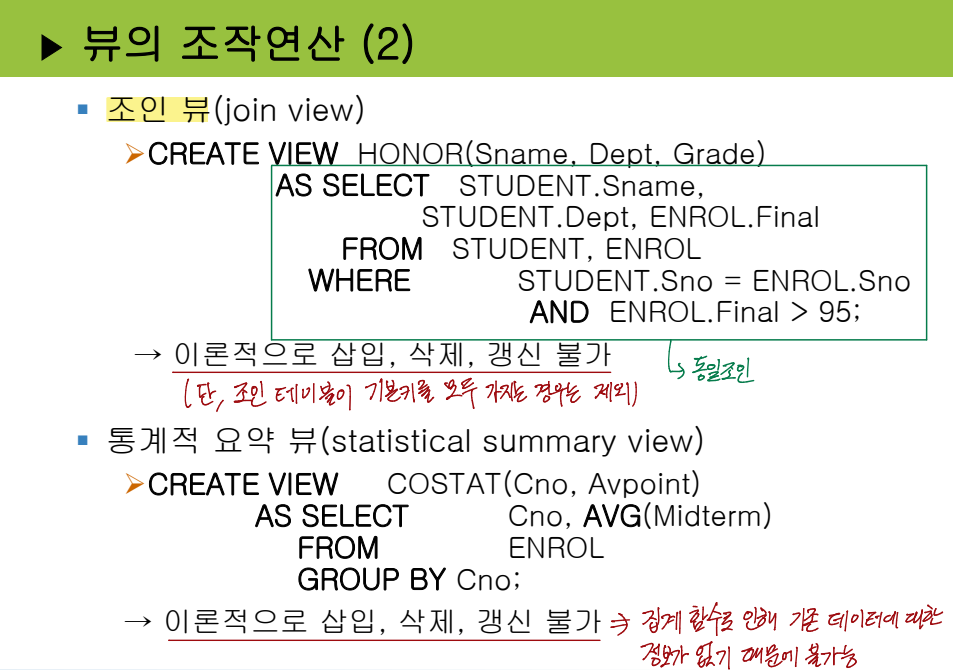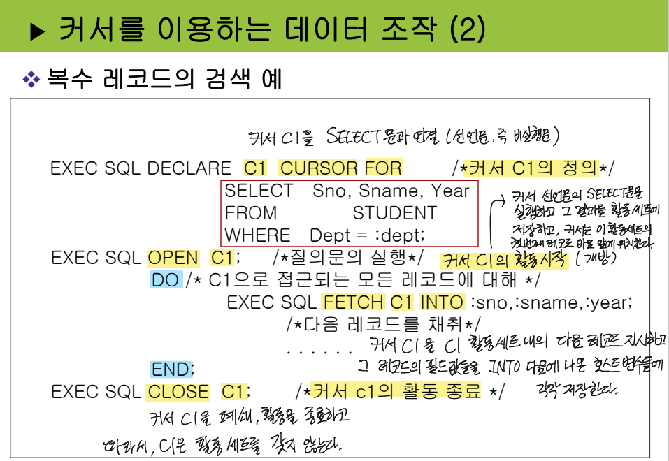 :데이터 정의어(DDL): 데이터베이스의 스키마를 정의하고 수정하기 위한 명령어입니다. 테이블, 뷰, 인덱스, 프로시저, 함수 등을 생성, 수정, 삭제할 수 있습니다.